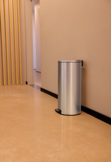 Conta com sistema Stay-Open, que mantém a tampa aberta quando necessário, facilitando o descarte de resíduos. Seu fechamento suave reduz ruídos, proporcionando mais conforto no uso diário. O pedal resistente suporta até 1 milhão de ciclos, garantindo longa vida útil. Possui balde interno removível com furação para fixação do saco de lixo e base antiderrapante para maior estabilidade.