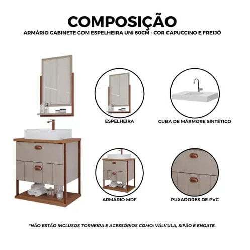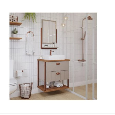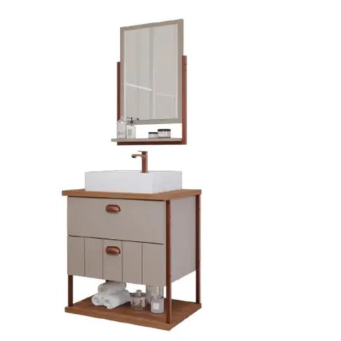 O gabinete para banheiro com cuba e espelheira Uni Capuccino/Freijó da MGM é a solução ideal para quem busca elegância e modernidade, pois ele traz um design contemporâneo e funcional.