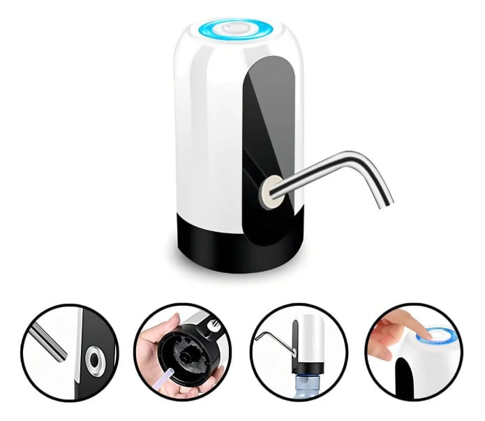 Compatível com galões de 10 e 20 litros, possui design funcional e moderno, além de carregamento via USB, oferecendo maior versatilidade no uso. Pode ser utilizada inclusive durante o carregamento, garantindo praticidade contínua sempre que necessário.