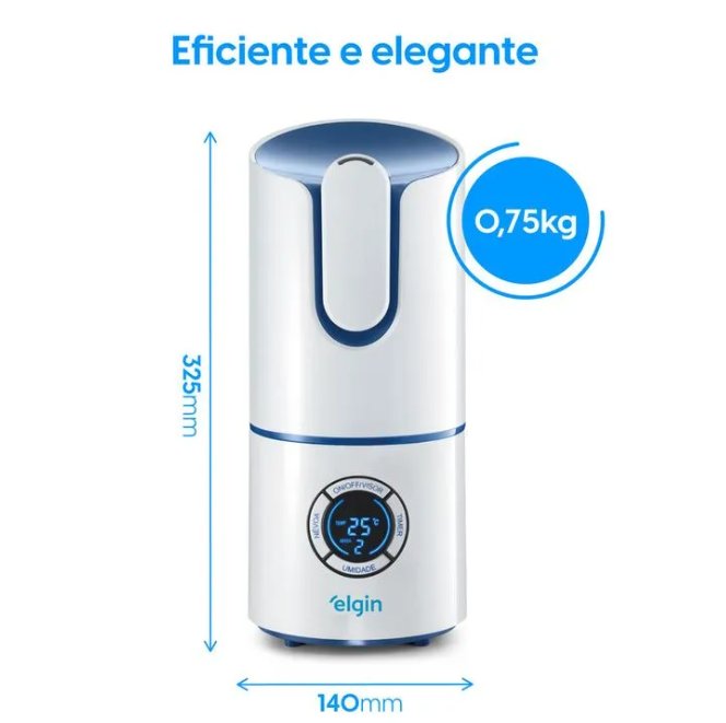 O Umidificador de Ar Elgin Digital 2,5L (UDZ) é ideal para melhorar a qualidade do ar em ambientes internos, proporcionando mais conforto e bem-estar. Com tecnologia ultrassônica, funcionamento silencioso e painel digital, ele permite controlar a umidade de forma prática e eficiente, atendendo ambientes de até 25 m².