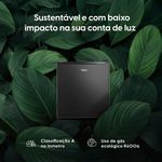 Apresenta eficiência energética Classe A (INMETRO), proporcionando menor consumo de energia, e utiliza gás ecológico R600A, livre de CFC, contribuindo para a sustentabilidade.