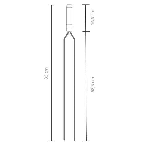 O Espeto Duplo Inox 85 cm da linha Standard é ideal para churrasqueiras que exigem firmeza e resistência no preparo. Produzido em aço inox, possui lâmina de 68 cm, garantindo maior área de apoio para carnes, frangos e peças maiores, além de facilitar o manuseio e o assado uniforme.