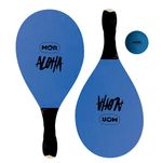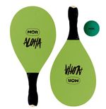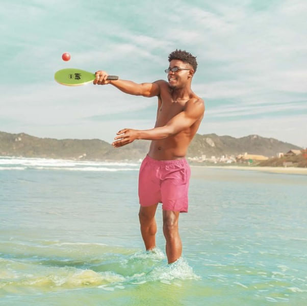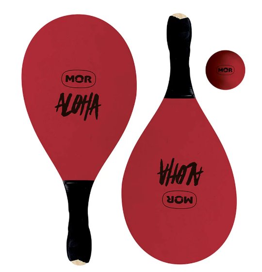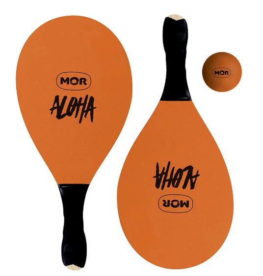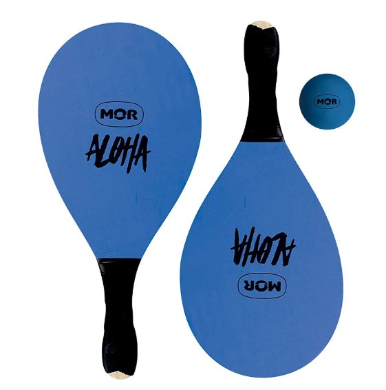 O kit é composto por duas raquetes em madeira com cabos revestidos em E.V.A, proporcionando maior conforto e firmeza durante o uso, além de uma bolinha de borracha, permitindo iniciar a brincadeira assim que o produto chega à sua casa.