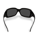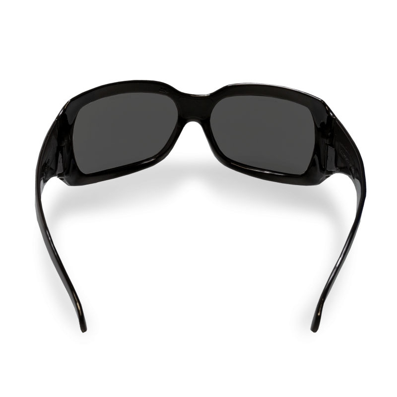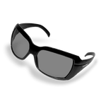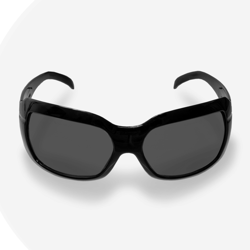 Óculos de proteção constituídos de armação e arco confeccionados em policarbonato, com ponte e apoio nasal injetados do mesmo material. Possuem lentes em policarbonato encaixadas na armação e hastes tipo espátula, também em policarbonato, articuladas ao arco por meio de parafusos metálicos.
