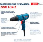 A Parafusadeira / Furadeira Bosch GSR 7-14 E é uma ferramenta profissional reconhecida pelo excelente custo-benefício. É a única da categoria que conta com controle de torque (24 + 1 posições), embreagem de segurança e cabo de 4 metros, oferecendo mais praticidade, controle e segurança durante o uso.