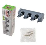 O Suporte para Vassouras te oferece uma forma barata e pratica de organizar seus utensílios, com 3 suportes e 4 ganchos, o suporte permite que você coloque Vassouras, Rodos e até pás de forma organizada em sua casa.